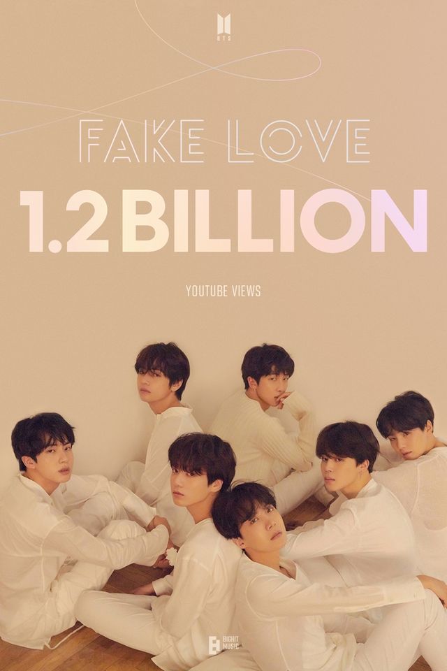 지난 2018년 5월 18일 발매된 방탄소년단 정규 3집 LOVE YOURSELF 轉 'Tear' 타이틀곡 'FAKE LOVE'의 뮤직비디오 유튜브 조회수가 24일 오후 3시 54분경 12억 건을 넘어섰다. 이 뮤직비디오는 이로써 방탄소년단의 통산 6번째 12억뷰 뮤직비디오가 됐다.