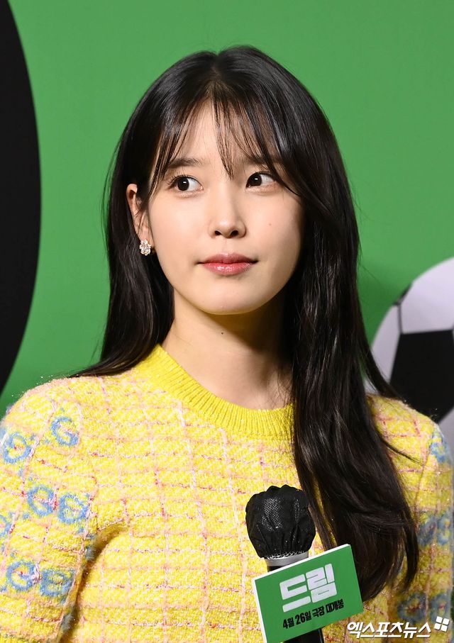 이날 쇼케이스에 참석한 가수 겸 배우 아이유가 인사하고 있다.