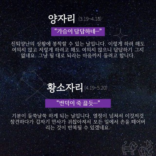 될 듯 말 듯 애를 태우게 되니 하루가 한 달처럼 느껴질 수 있는 날입니다. 일을 추진하는 중이라면 계속해야 할지 그만 포기를 해야 할지 결정을 내리기 힘들어질 수도 있겠고요.