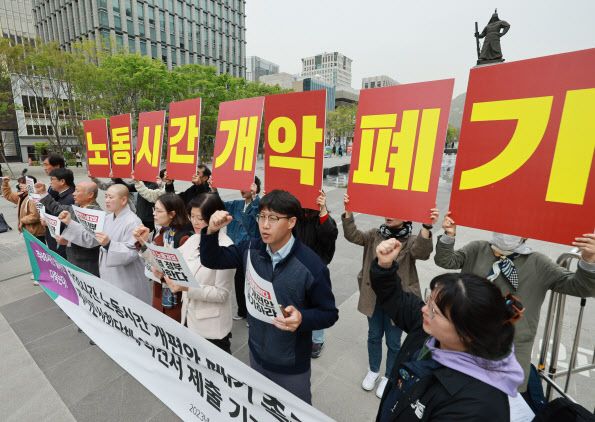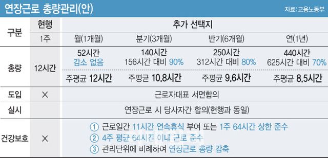앞서 고용부는 지난 달 ‘주’ 단위 연장근로시간 관리 단위를 ‘월, 분기, 반기, 연’ 단위 다양화하는 내용의 근로시간 제도개편안을 발표했다. 11시간 연속휴식권 보장 시 1주 최대 69시간, 휴식권을 보장하지 않으면 최대 64시간을 근무할 수 있도록 하는 내용이다.