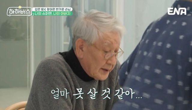 특히 하하 아버지는 "요즘 눈도 좀 그렇고 귀도 그렇다"라면서 "귓볼에 주름이 생기면 치매가 있는 사람이라고 하더라. 치매가 시작되는 거 같아 얼마 못 살 것 같다"고 전해 먹먹함을 자아냈다.
