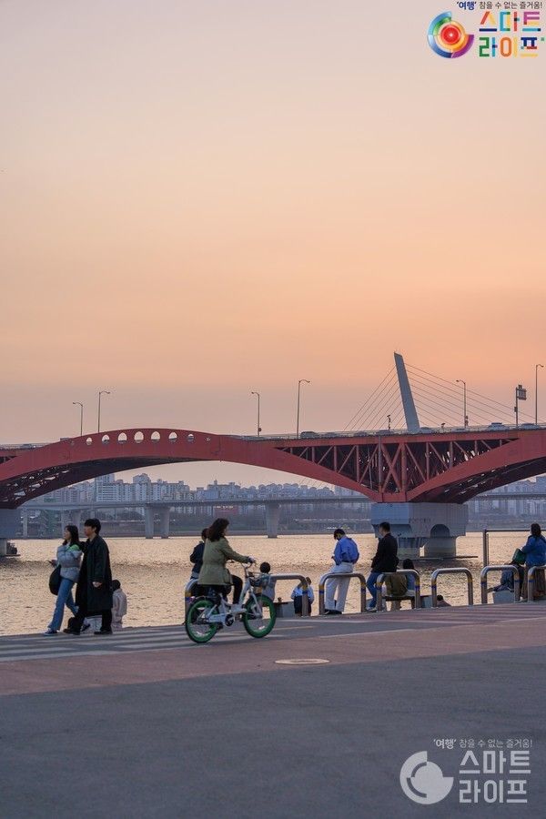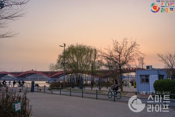 유독 노을이 예쁘게 지고있는 이날. 퇴근하다가도 많은 사람들이 들려 발걸음을 멈추고 이 풍경을 감상하고 있고, 저렴한 자전거인 따릉이를 타고 한강변을 시원하게 내달리고 있는 사람들도 눈에 들어온다.