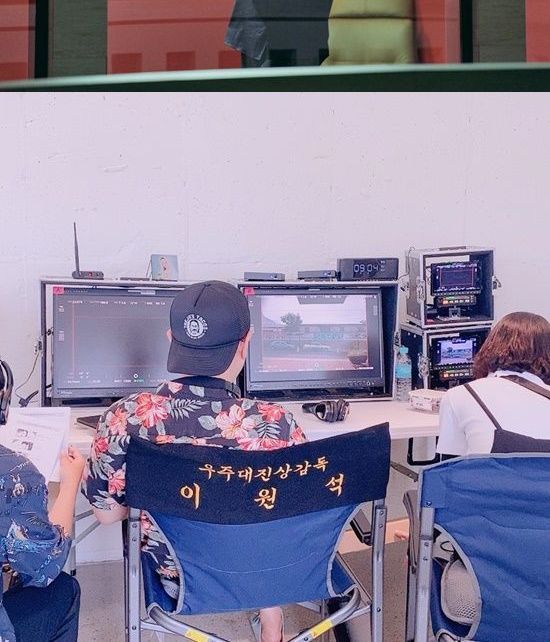 특히 진지하게 모니터링하고 있는 이원석 감독의 뒷모습과 대조적으로 의자에는 '우주대진상감독 이원석'이라고 쓰여 있어 유쾌함을 더한다.