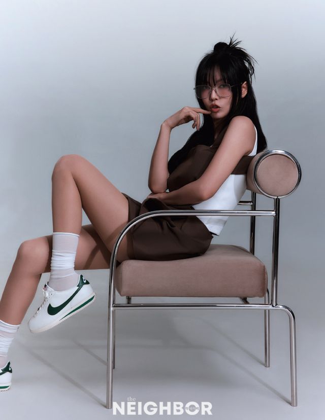 원피스 프라다, 안경 젠틀몬스터, 스니커즈 나이키, 이너 톱과 양말 모두 스타일리스트 소장품.