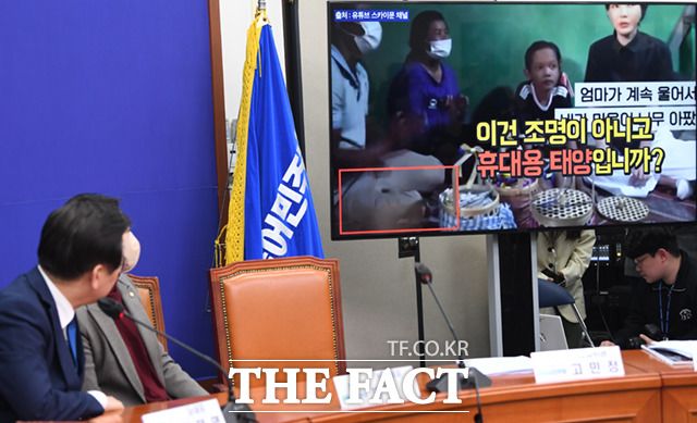 이 대표는 이날 회의에서 장 최고위원 등과 함께 해당 영상을 살펴본 뒤 "객관적이고 과학적인 판단을 하기에 앞서서 육안으로 봐도, 상식적으로 판단해도 조명 사용한 게 맞는 것 같다"며 "저도 보니 조명 같은데, 저도 고발하시기 바란다"고 말했다.
