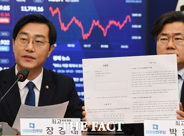 이어 고발장을 공개한 장 위원은 "피해자 대통령 비서실의 부속실 직원들 및 김건희는 당시 조명을 썼던 사실이 전혀 없었다며 같은 문장을 여러 차례 '복붙'하고 있다"며 "'조명을 사용했다. 안 했다'로 대통령실의 직원들과 김건희 여사의 명예가 훼손됐다는 해괴한 논리가 적시되어 있다"고 말했다.