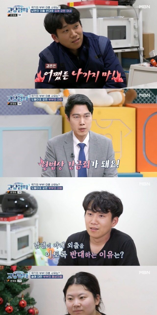 앞서 아내인 이다교는 전업주부로 하루종일 아이를 육아하며 남편의 감시로 인해 집밖을 나서지 못하는 답답함을 호소한 바 있다. 반면 남편 정현석은 아내의 알콜 의존증과 거짓말로 믿을 수 없기 때문에 밖을 내보낼 수 없다며 팽팽히 맞섰다.