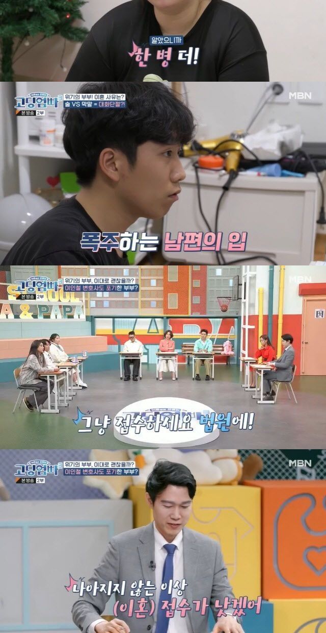 [이데일리 스타in 김보영 기자] ‘고딩엄빠3’ 이다교, 정현석 부부가 아내의 알코올 의존증과 이를 통제하려는 남편의 욕설로 시청자들에게 경악 및 안타까움을 안겼다. 이를 본 이인철 변호사는 이혼 접수를 하는 게 낫겠다고 단호히 일침을 날렸다.