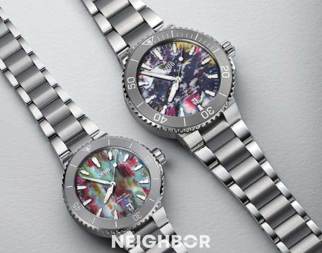 해양 플라스틱을 재활용한 다이얼을 얹은 오리스 아퀴스 데이트 업사이클.