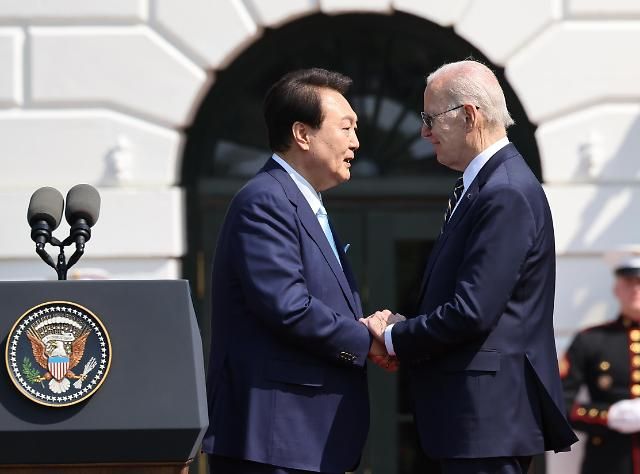 尹大統領は同日、米ワシントンDCホワイトハウスでバイデン大統領と首脳会談に臨み、 「北韓の核・ミサイル脅威に直面し、相手の善意に頼る偽平和ではなく、圧倒的な力の優位を通じた平和を達成するために両国間の拡張抑制を画期的に強化することで合意した」と共同記者会見で発表した。
