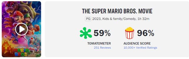 그러나 영화를 관람한 슈퍼 마리오 게임 팬들의 입장은 다르다. 현재 로튼 토마토 비평 사이트에서 관람객 지수는 무려 96%다.