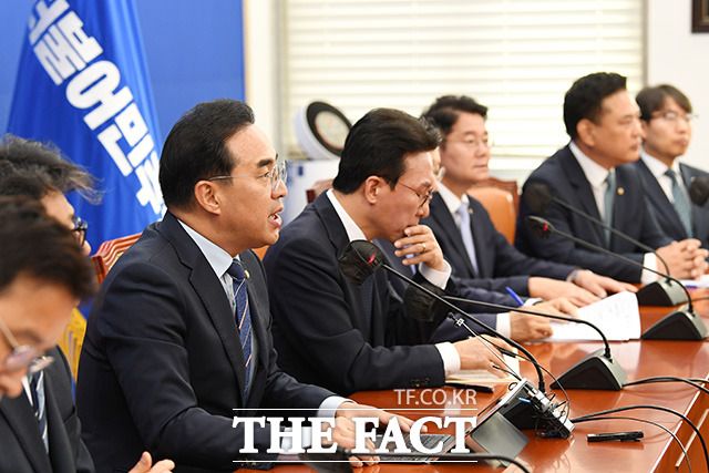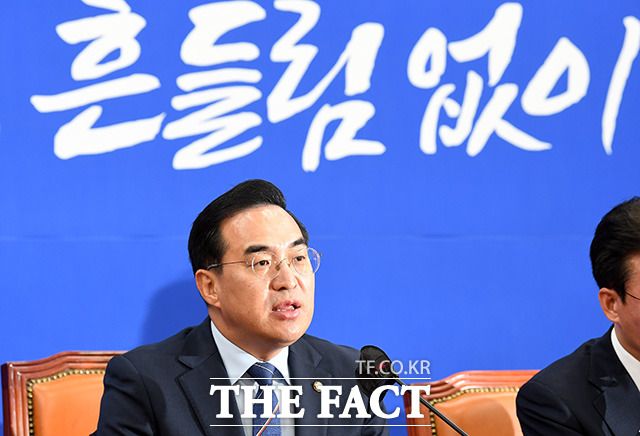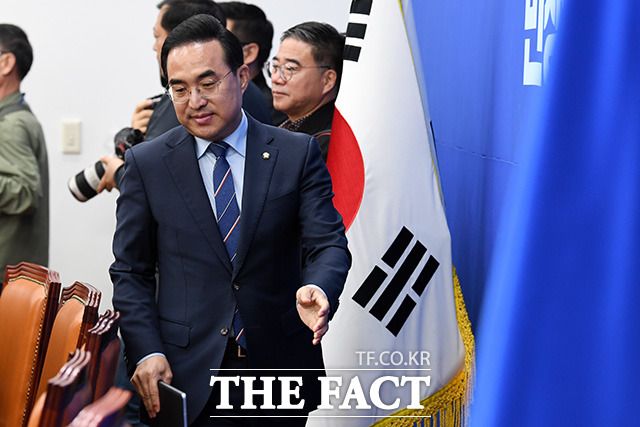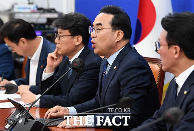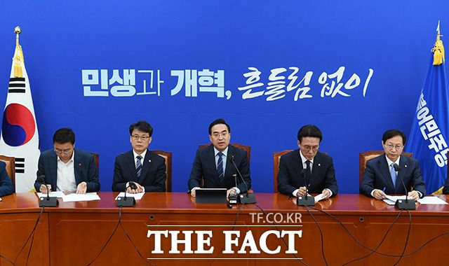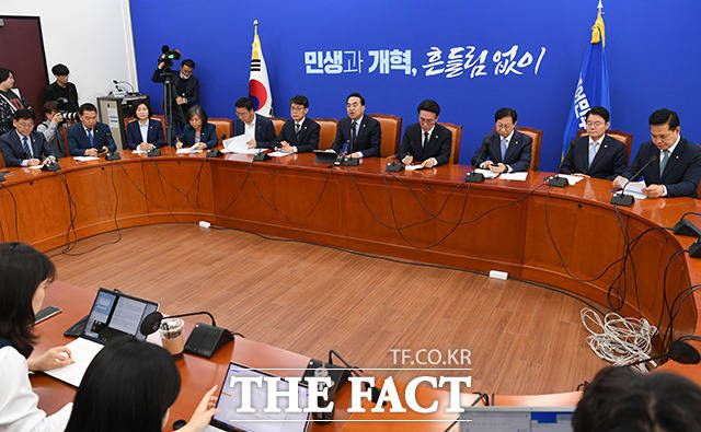 [더팩트ㅣ국회=남용희 기자] 박홍근 더불어민주당 원내대표가 27일 오전 서울 여의도 국회에서 열린 정책조정회의에서 발언을 하고 있다.