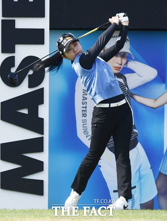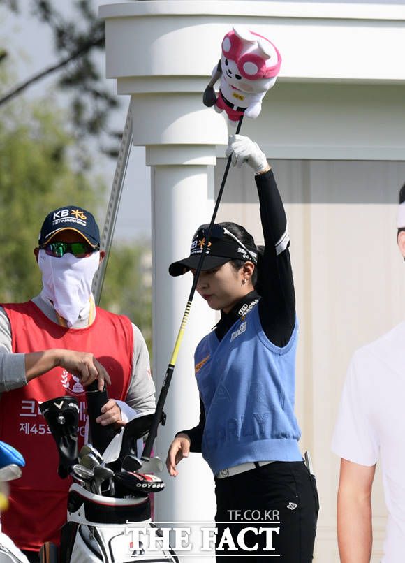 [더팩트ㅣ양주=이새롬 기자] 이예원이 27일 경기도 양주시 레이크우드CC에서 열린 한국여자프로골프(KLPGA)투어 '크리스 F&C 제45회 KLPGA 챔피언십' 1라운드에서 14번홀 티샷을 준비하는 가운데, 토끼 인형의 드라이버 헤드 커버거 보이고 있다.