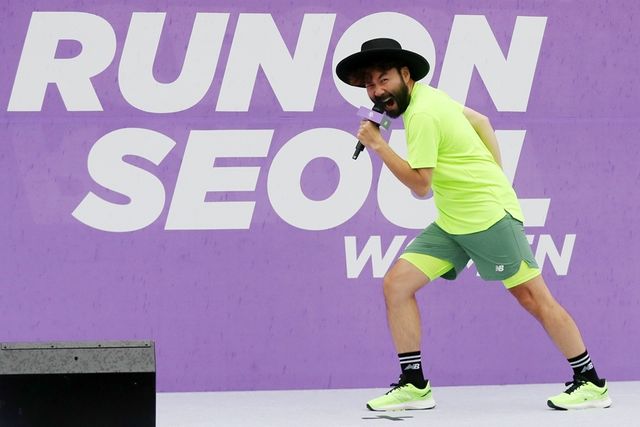 노홍철이 지난해 10월 2일에 서울 영등포구 여의도 여의대로에서 열린 뉴발란스 글로벌 러닝대회 '2022 런온 서울 우먼스'에서 사회를 맡아 포즈를 취하고 있다. / 이하 뉴스1