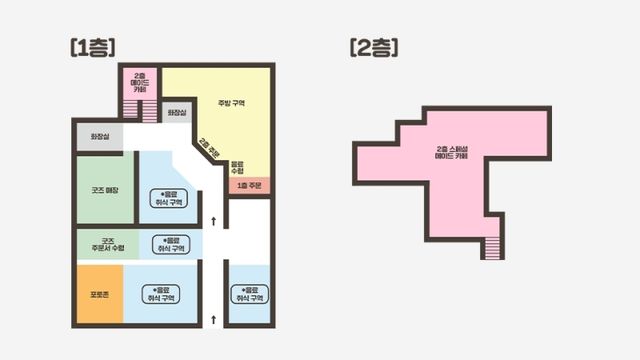 2층 스페셜 메이드 카페 이용 시간도 1시간 30분으로 제한된다. 코코아의 특별한 케첩 아트, 메이드의 특별 공연을 즐길 수 있고 간단한 디저트를 먹거나 식사도 가능하다.