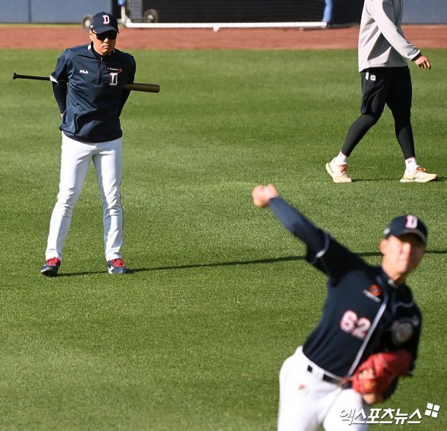 이승엽 감독은 간단한 인사를 제외하면 현재까지는 김유성에 별다른 말을 건네지 않았다. 지난해 두산 지휘봉을 잡은 직후 11월 마무리 캠프 기간 선수 한 명 한 명과 개별 면담을 진행하는 등 소통에 적극적이었지만 김유성이 혹시 모를 부담을 느낄까 우려해 조언조차 아끼고 있다.