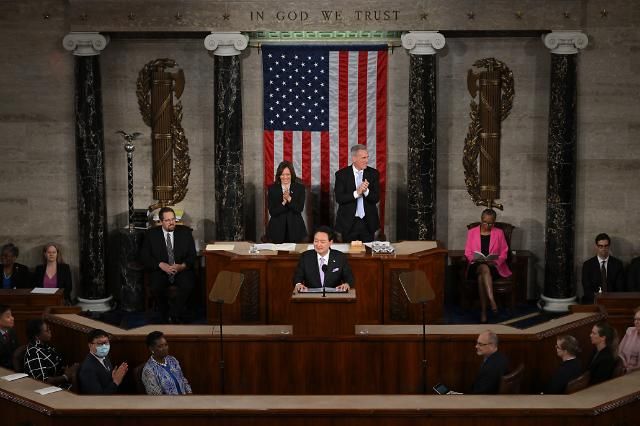 한국 대통령이 미 의회에서 연설을 한 건 2013년 박근혜 대통령 이후 10년 만이다. 이날 연설은 영어로 44분 정도 진행했다. 윤 대통령 연설에 의원석과 방청석에서는 박수가 56번, 이 중 기립 박수는 23번 나왔다.