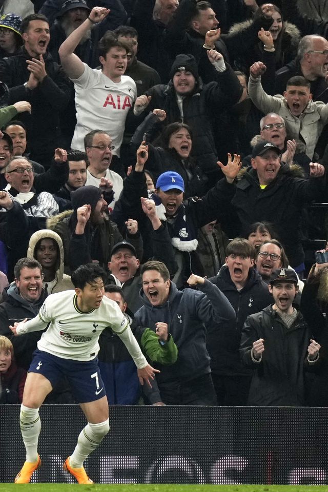 손흥민은 28일(한국시간) 영국 런던의 토트넘 홋스퍼 스타디움에서 열린 2022~23 잉글랜드 프리미어리그(EPL) 맨체스터 유나이티드(맨유)와 33라운드 홈 경기에서 1-2로 뒤진 후반 34분 ‘단짝’ 해리 케인의 어시스트를 받아 동점골을 만들어냈다.