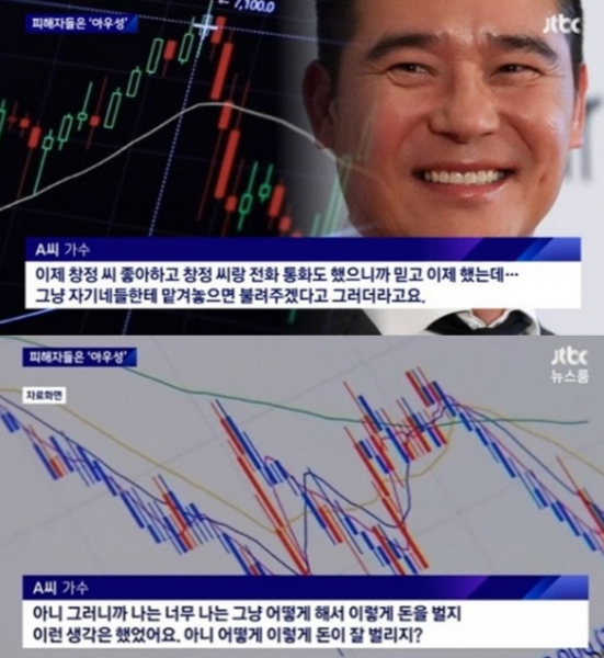 그러면서 "전속계약 후 그 회사에서 깔아준 앱을 보니 1억이 300만~400만 이렇게 불어나는 것을 보고 천재라고 생각했다. 그래서 돈을 벌 때마다 조금씩 돈을 보냈고 그게 모두 4,000만 원"이라며 "어제 돈이 크게 없어졌길래 물어보니 이틀 동안 난리가 났었다더라. 제가 할 수 있는 게 없었다."고 토로했다.