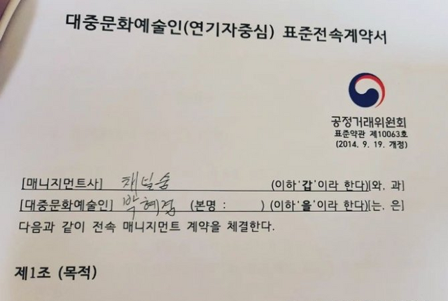 그는 "친한 언니를 통해 문제 되는 이 회사를 소개받았다. 그 언니가 전속 계약 체결을 조율했는데, 회사 대표가 자기 조카사위니까 무슨 일이 생기면 언니가 해결할 수 있으니, 여기가 좋을 것 같다고 했다. 자금도 넉넉하다고 했다."며 "회사에서는 계약금으로 1억 원 줄 건데 회사에 맡기는 조건이라고 했다"고 주장했다.