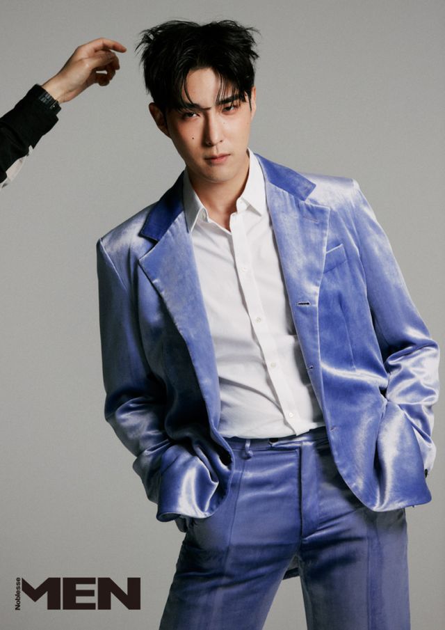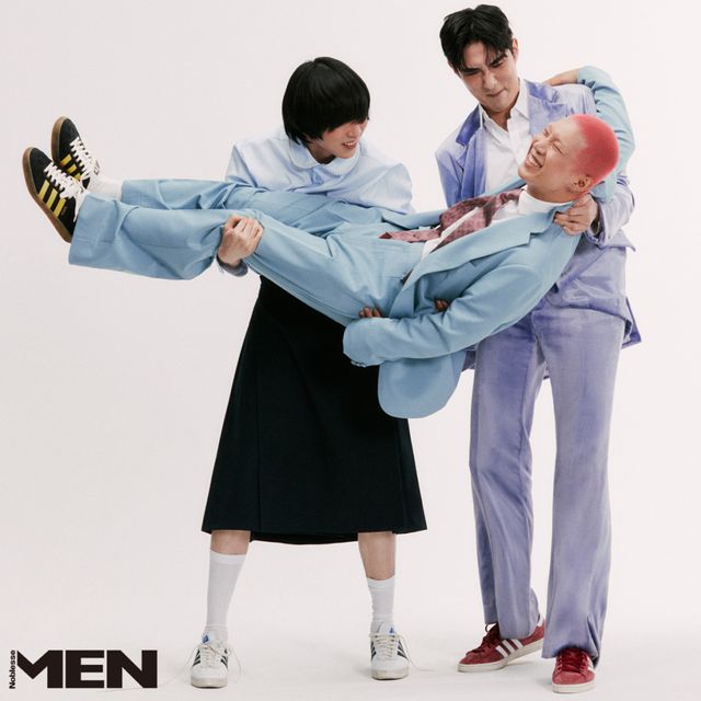 김준원_ 재킷과 팬츠 모두 Marni, 핑크 스웨이드 스니커즈 Adidas,