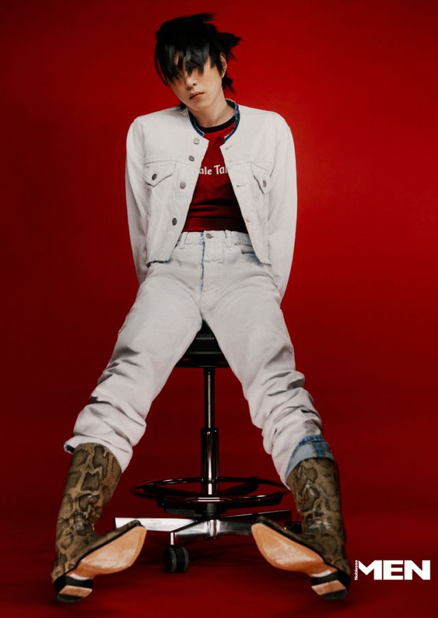 김준원 _ 재킷 Egon Lab, 트랙 팬츠 Gallery Dept, 블랙 로퍼 Valentino Garavani, 이너톱, 볼캡 모두 스타일리스트 소장품.