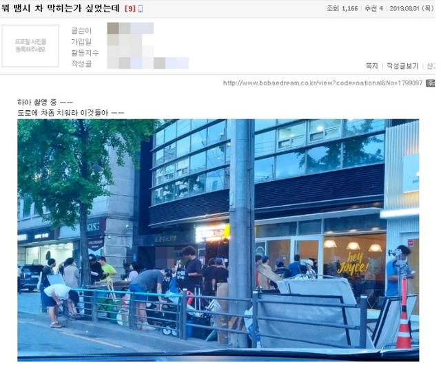 한 누리꾼은 지난 9일 온라인 커뮤니티에 "드라마 촬영팀 원래 이럼?"이라는 제목의 글을 올렸다.