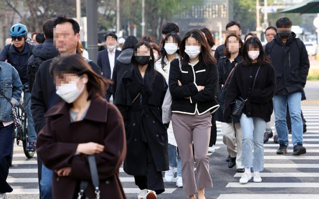 비가 그치고 쌀쌀한 날씨를 보인 7일 오전 서울 종로구 광화문네거리에서 출근길 시민들이 이동하고 있다.(사진=연합뉴스)