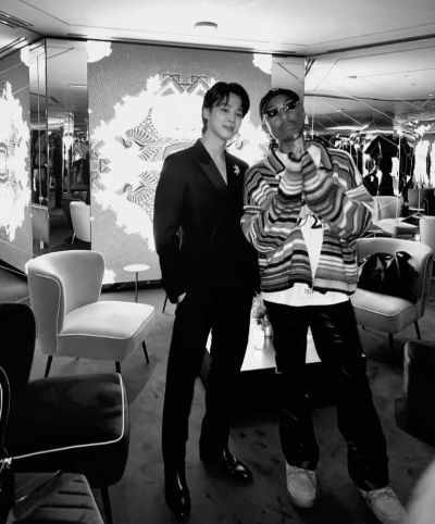 지민은 자신의 SNS를 통해 티파니 재개장 행사에서의 모습을 공개했다. 미국 팝스타 퍼렐 윌리엄스와의 투샷도 화제를 모았다.