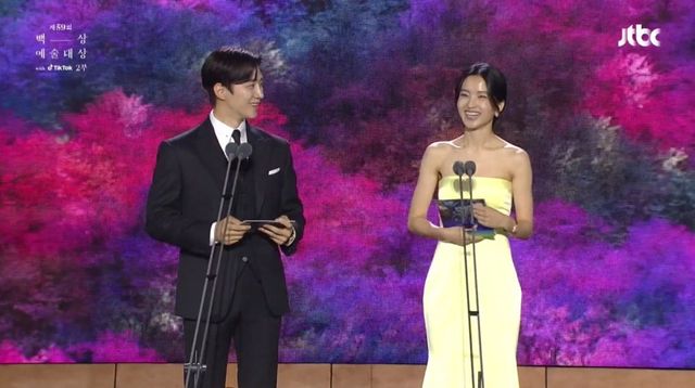 이어 두 사람이 TV 부문 남자 최우수 연기상을 시상할 차례가 됐다. 후보에 오른 '나의 해방일지' 손석구, '우리들의 블루스' 이병헌, '재벌집 막내아들' 이성민, '일타 스캔들' 정경호, '카지노' 최민식이 차례대로 소개됐다.