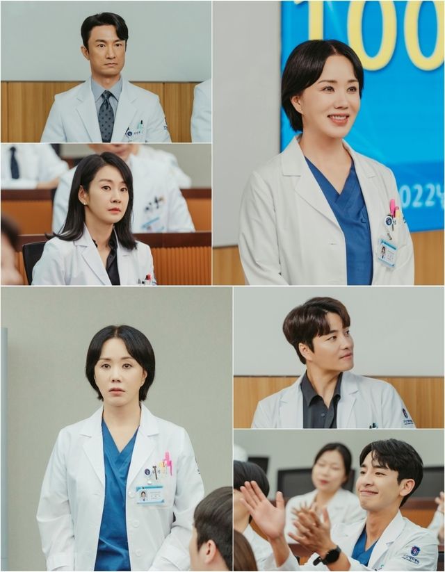 JTBC 토일드라마 ‘닥터 차정숙’ 측은 29일, 동료 의사들의 시선을 한 몸에 받으며 단상 위에 오른 차정숙(엄정화 분)의 모습을 공개했다. 토끼 눈을 뜨고 동공지진을 일으키는 서인호(김병철)와 굳은 얼굴의 최승희(명세빈), 흐뭇하게 미소 짓는 로이킴(민우혁)과 박수갈채를 보내는 아들 서정민(송지호)의 극과 극 반응은 차정숙에게 일어난 변화에 궁금증을 높인다.