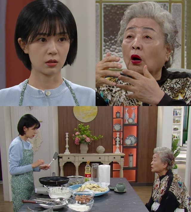 공개된 사진에는 앞치마를 맨 채 전을 부치고 있는 연두와 이를 지켜보는 금실의 대립이 그려져 심상치 않은 하루의 시작을 예감케 한다. 먼저 연두는 금실 앞에서 전을 부치는 것에 긴장한 듯 뒤집개를 손에 꽉 쥐고 있다. 반면 금실은 카리스마 넘치는 모습으로 그녀를 바라보고 있어 임신한 손주며느리 연두를 향한 남다른(?) 포스가 느껴진다.