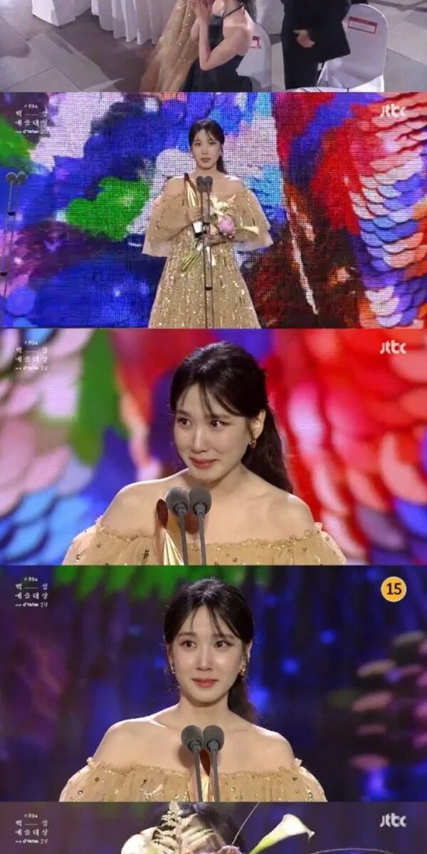 박은빈은 자신의 이름이 호명 되자마자 한참 눈물을 터뜨렸다. 그는 "'우영우' 팀을 대표해서 내가 상을 받는 것 같다. 감사하다. 한 해 동안 무수히 많은 작품들이 만들어지고 그 속에서 헌신하시는 훌륭한 분들이 많으신데 저에게 상을 주셔서 감사하다"고 말했다.