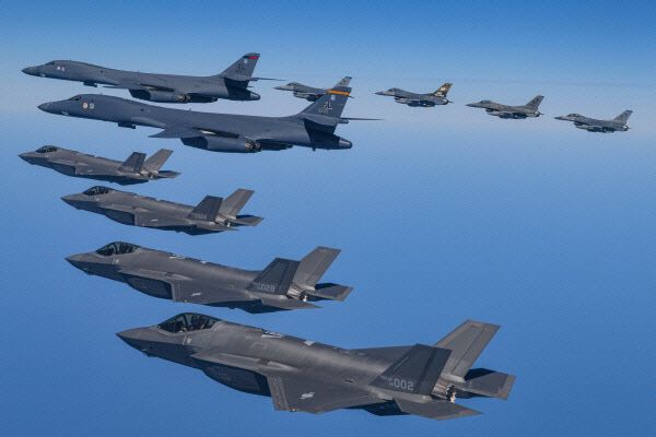 한미 공군이 한반도 상공에서 한국 F-35A 전투기와 미국 공군 B-1B 전략폭격기 및 F-16 전투기가 참여한 가운데 연합공중훈련을 하고 있다.(사진=뉴시스)
