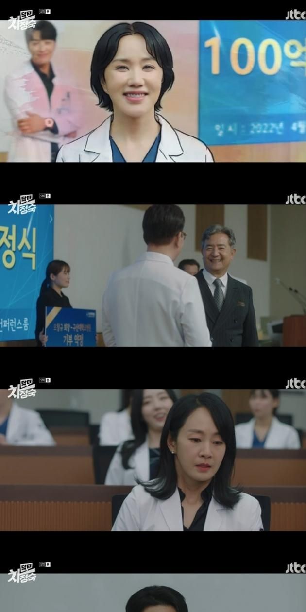 뉴스1에 따르면 JTBC 토일드라마 '닥터 차정숙'(극본 정여랑/연출 김대진 김정욱) 5회에서 차정숙(엄정화 분)의 도움을 받은 오창규(송영창 분)가 병원에 100억원을 기부하는 것으로 보답했다.