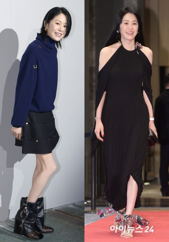 '입금은 계속된다' 왼쪽부터 29일 잠수교에서 진행된 루이비통 패션쇼에 참석한 고현정과 지난 10월 한 행사장에 참석한 고현정의 모습. [사진=정소희 기자]