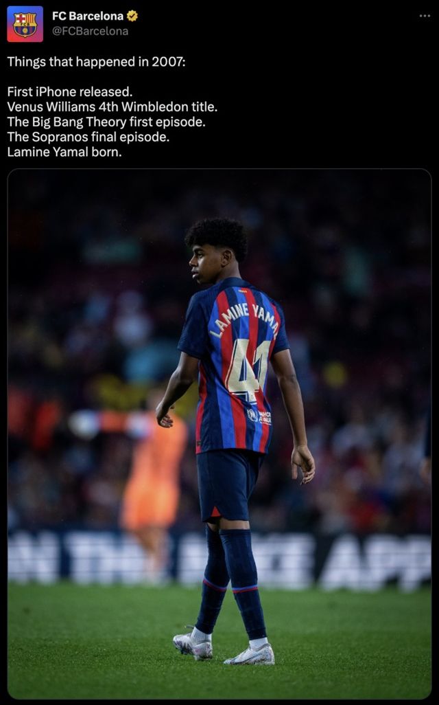 바르셀로나 역시 야말에 대한 기대감을 숨기지 않았다. 바르셀로나는 공식 SNS를 통해 야말이 태어난 해를 조명했다. 2007년에는 비너스 윌리엄스가 4번째 윔블던 타이틀을 차지했고, 선풍적인 인기몰이를 한 미국 드라마 '빅뱅이론'이 첫 방송을 했고, 미국 범죄 드라마 '소프라노스'가 종영했다. 그리고 처음으로 아이폰이 출시됐다.