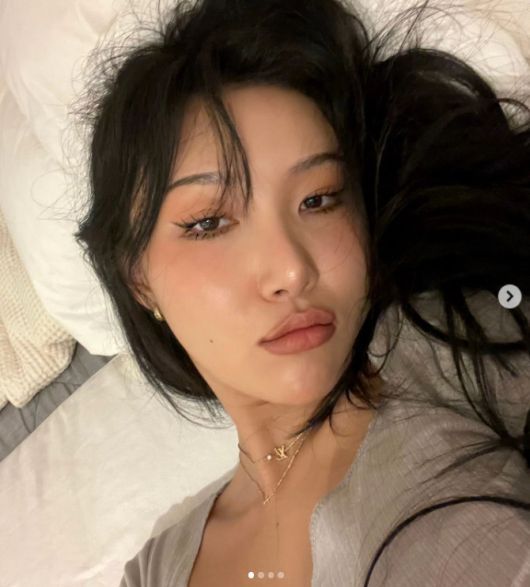 사진 속에는 회색 티셔츠를 입은 화사가 침대에 누워 카메라를 바라보면서 셀카를 찍고 있는 모습이 담겼다. 화사는 짙은 화장을 하고 뇌쇄적인 눈빛으로 카메라를 응시하고 있다.