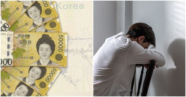 5만원권 지폐 / 낙담한 청년 / aof3061·tairome-shutterstock.com
