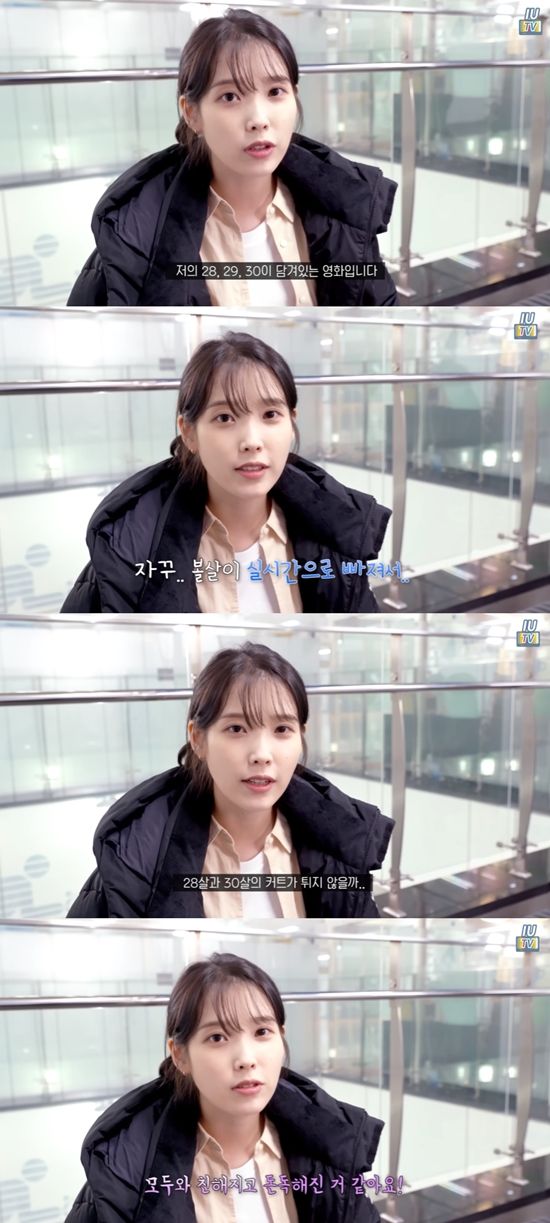 끝으로 아이유는 마지막 촬영 소감을 밝히기도. 그는 "저의 28, 29, 30살이 담겨 있는 영화다. 자꾸 볼살이 실시간으로 빠진다. 28살과 30살의 커트가 튀지 않을까 걱정된다. 그래도 오랫동안 찍어서 좋았다. 다들 친해지고 돈독해졌다"고 이야기했다.