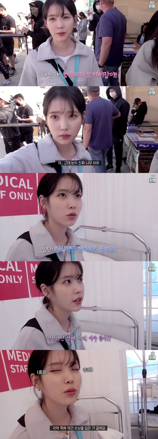 하지만 이내 아이유는 "눈이 진짜 너무 아프다"며 헝가리의 강한 자외선으로 인한 눈 통증을 호소했다.