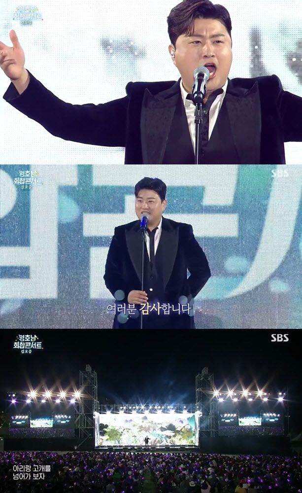 김호중은 1일 오후 5시 50분 방송된 SBS ‘영호남 화합 콘서트’에 출연, 현장을 보랏빛으로 단숨에 물들였다.