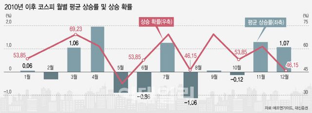 5월마다 약세장이 반복되고 있는 점도 약세장 전망의 근거로 꼽힌다. 금융정보업체 에프엔가이드와 대신증권에 따르면 2010년 이후 코스피 5월 평균 수익률은 -0.88%로 일 년 중 가장 낮았다. 월별 상승 확률 역시 5월이 38.5%로 가장 저조했다. 국내 증시 방향을 결정짓는 외국인 매매 역시 2000년 이후 평균적으로 5월에 8000억원어치를 순매도한 것으로 나타났다. 연중 가장 큰 매도 규모다.