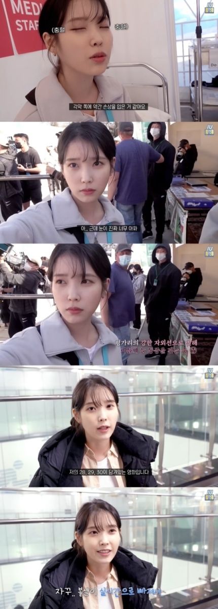 아이유는 또 "햇빛이 너무 세서 눈이 너무 아프다. 각막 쪽에 손상을 입은 것 같다. 왜 해외에 나갈 때 선글라스를 쓰라고 하는지 알겠다"며 고충을 털어놨다.