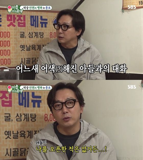 '애들이랑 몇 살 때부터 어색함이 생기냐?'는 질문에 탁재훈은 "애들 사춘기 때부터 조금씩 생긴다. 지금 우리 애들은 아들과 딸이 22세, 21세다. 우연히 아들 SNS를 봤는데 여자친구랑 노는 사진을 올렸더라. 근데 애들이 날 오픈한 적은 없다"고 말하며 섭섭함을 드러냈다.