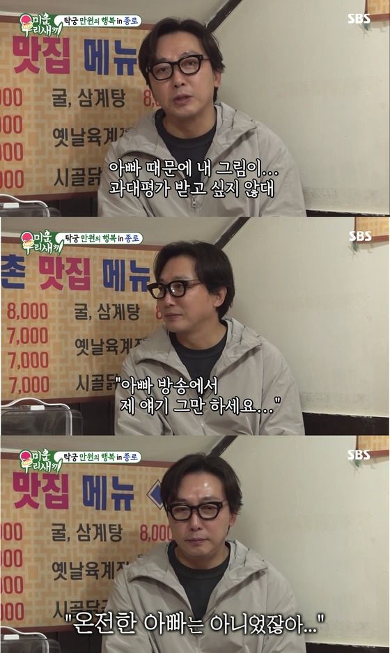 또 탁재훈은 "딸이 어느 날 그림 그리면서 누구랑 상담한 걸 우연히 들었는데, '아빠 때문에 내 그림이 과대평가 받고 싶지 않다'고 했다더라. 아빠의 혜택을 받고 싶지 않고, 오히려 숨기고 싶다는 것"이라고 서운해했다.