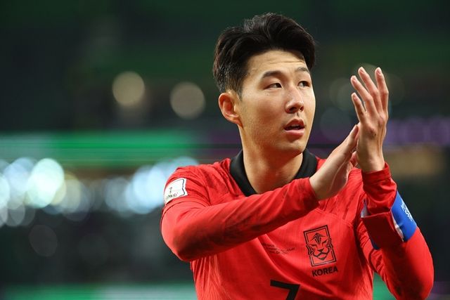 손흥민이 지난해 11월 25일(현지 시각) 카타르 알라이얀의 에듀케이션 시티 스타디움에서 열린 2022 카타르 월드컵 조별리그 H조 1차전 대한민국과 우루과이 경기에서 경기를 마친 뒤 마스크를 벗고 인사하고 있다. / 연합뉴스