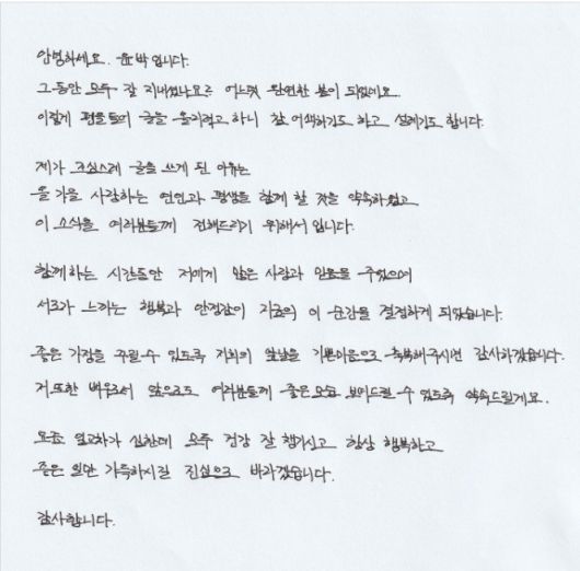 이날 윤박은 개인 SNS에 게재한 자필편지를 통해 올 가을 결혼식을 올린다고 밝혔다.