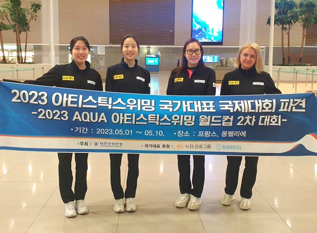 대한수영연맹은 아티스틱스위밍 대표팀 선수단이 오는 5일부터 프랑스 몽펠리에에서 열리는 2023 국제수영연맹 아티스틱스위밍 월드컵 2차 대회 참가를 위해 1일 밤늦게 프랑스로 출국했다고 밝혔다.