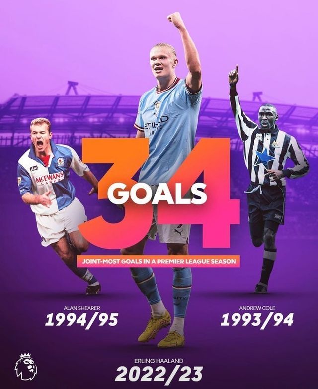 중심에는 홀란드가 있다. 지난해 여름 도르트문트를 떠나 맨시티에 입성한 다음 적응기 없이 EPL 무대를 휘젓고 있다. 과거 42경기 체제였던 1993-94시즌 앤디 콜(뉴캐슬)과 1994-95시즌 앨런 시어러(블랙번)가 보유하고 있는 'EPL 단일 시즌 최다 득점(34골)'과 타이를 이뤘다. 이대로라면 최다골 기록이 새로 수립될 수 있다.